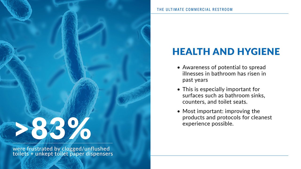 which will elevate the safety, durability, and cleanliness of the environment - Identify factors in a commercial bathroom that can enhance occupant